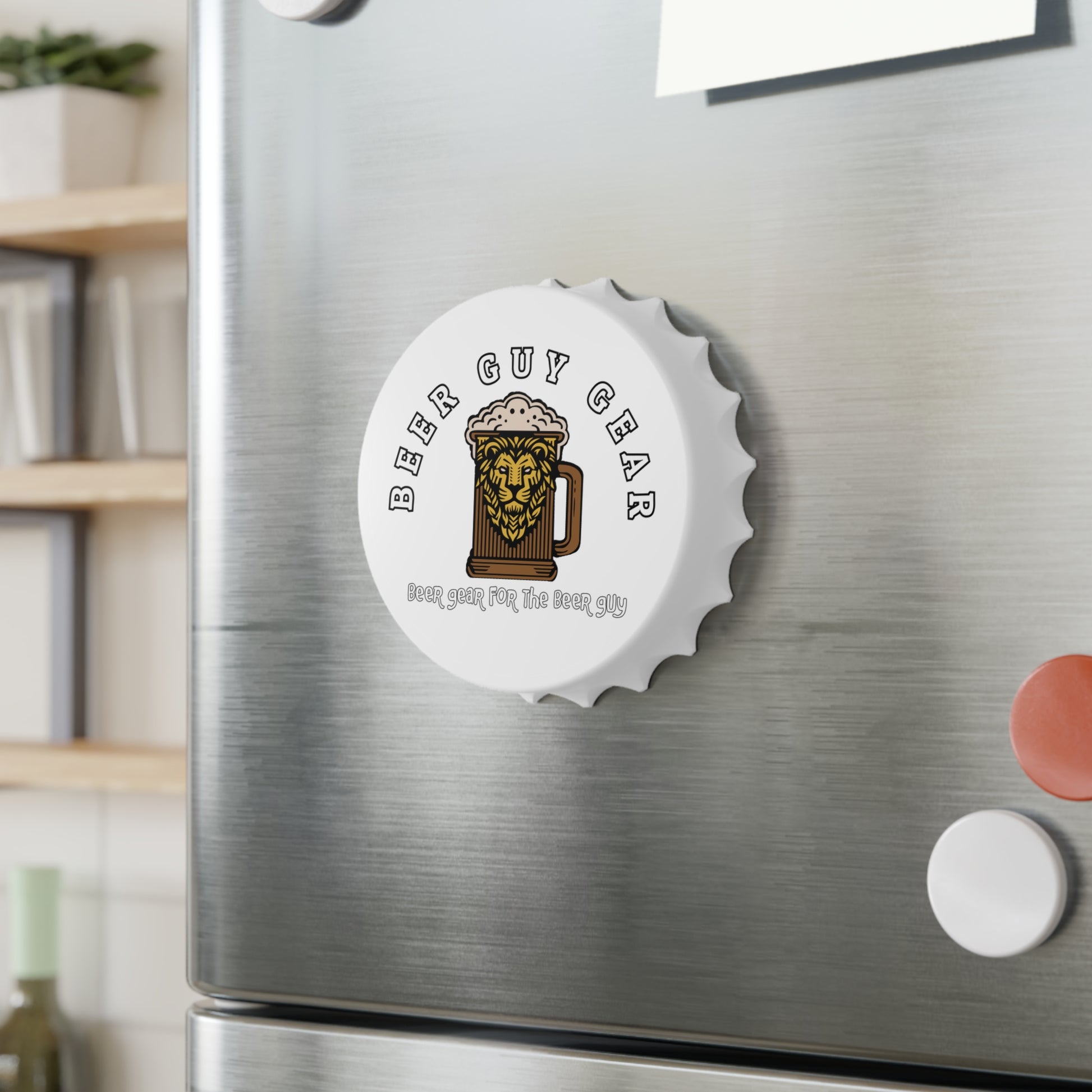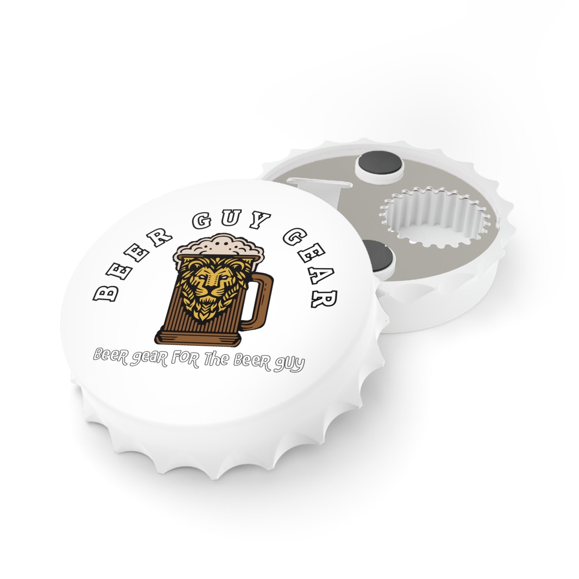 Crack open a cold one with ease and style using our Beer Guy Gear Bottle Opener! This sleek and simple opener is designed with convenience in mind, featuring a clean white finish and the iconic Beer Guy Gear logo. With its strong magnetic backing, you can keep it handy on your fridge or any metal surface, so you're always ready for the next bottle.